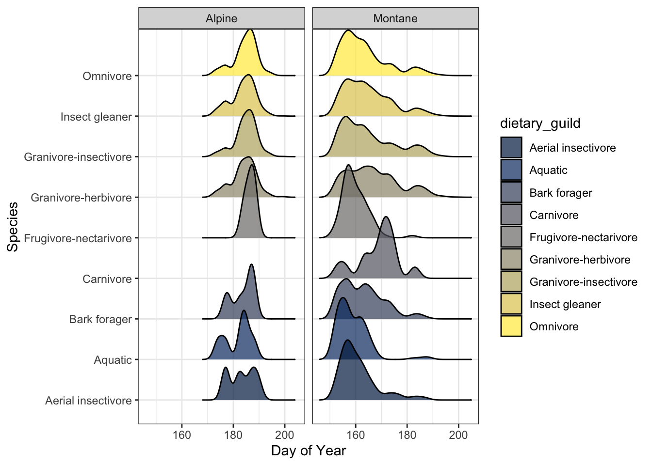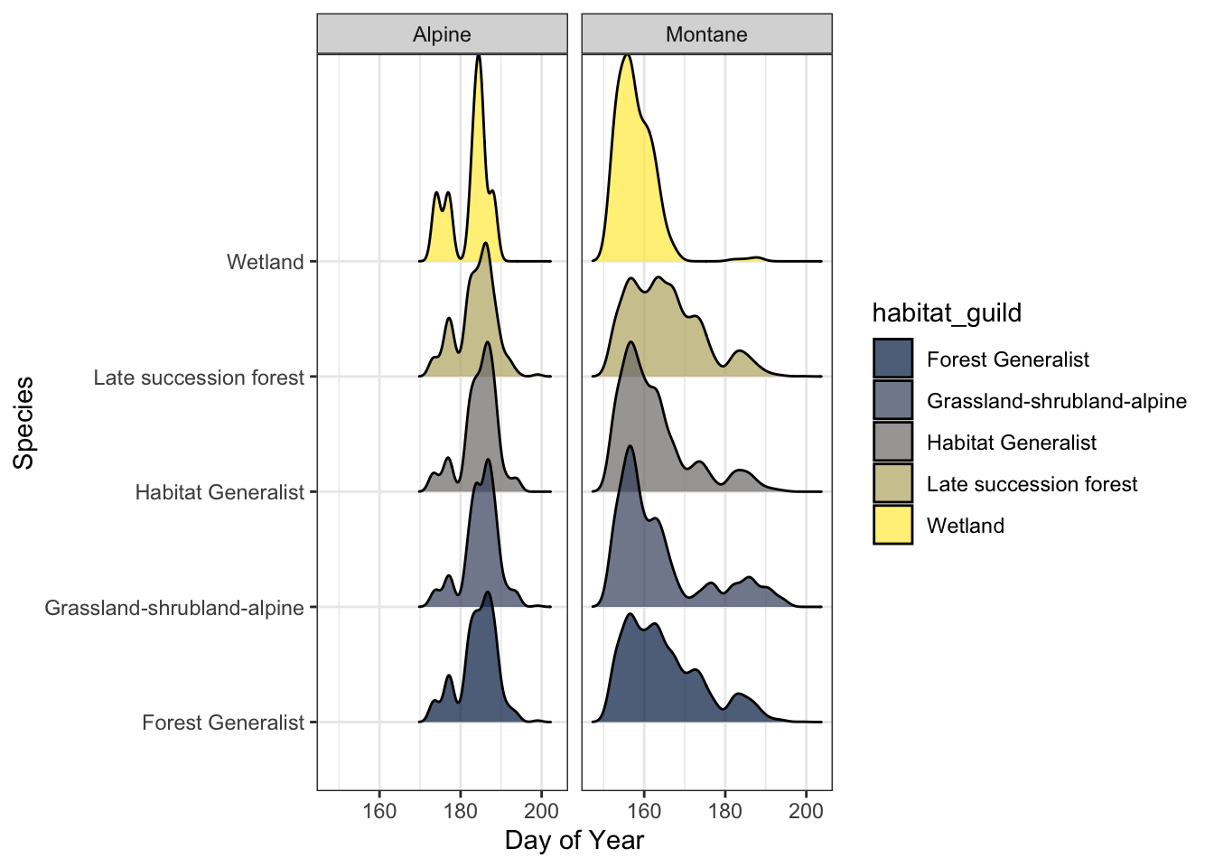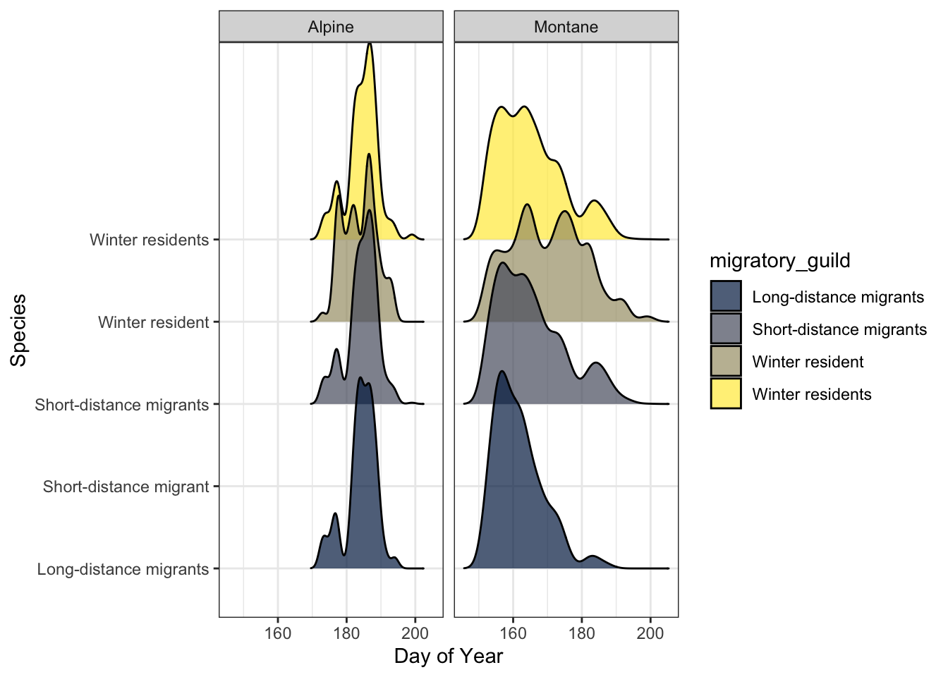 - Report on transects in montane/sub-alpine and alpine ecoregions, including time-to-first-detection where possible, with key metrics such as the percentage of bird species and guilds declining by ≥2.5% in both montane/sub-alpine and alpine regions.